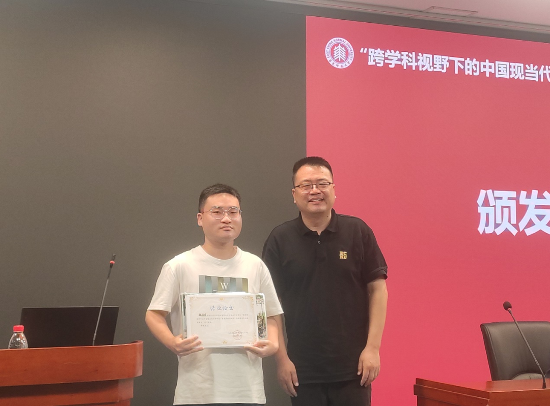 随后吕老师简要回顾了此次暑期学校的报告内容与研讨活动。他指出,各地专家学者为暑期学校同学做的报告,主题打通了历史、哲学、文学等领域分野,兼顾史料挖掘与前沿理论,具备世界视野与中国立场,内容丰富,精彩纷呈。在吕老师看来,同学们在专题研讨会上的分享也精彩纷呈,展现了非常广阔的学术视野和扎实的学术能力。最后,吕老师代表麻豆传媒 向参加此次暑期学校的所有专家、学员以及负责暑期学校筹备工作的罗岗老师、吴晗老师和全体志愿者致以敬意与感谢。致辞结束后,吕志峰老师向来自全国不同院校的学生代表颁发了结业证书和合影照片。