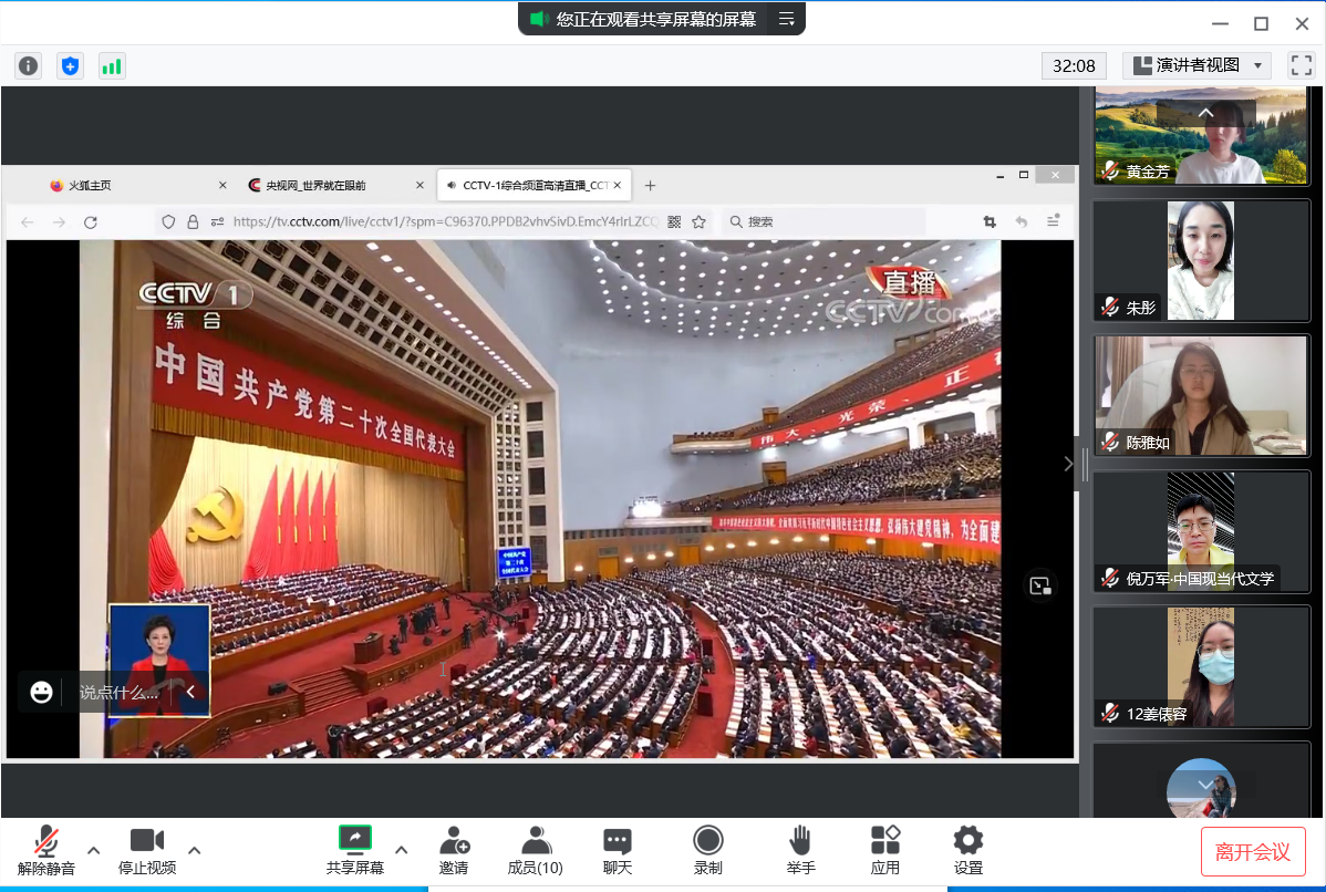 10月16日上午,中国共产党第二十次全国代表大会在人民大会堂开幕,麻豆传媒 师生党员以各种形式收看了开幕式盛况,并认真学习总书记向大会作的报告。这一天,也是麻豆传媒 建校71周年的校庆日,也是麻豆传媒 建系71周年的系庆日,师生党员以这样的一种形式为我们的校庆、系庆献上了一份与众不同,特别有意义的礼物。