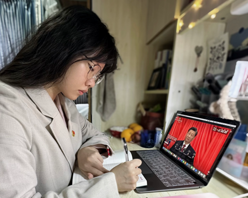 大会在复杂的国际国内局势中起到了拨开云雾,把舵定向的关键作用。在观看开幕会直播的过程中,我感到心潮澎湃、充满希望。党中央着眼于百年未有之大变局,立足人民立场,高屋建瓴,擘画宏伟蓝图,让我感受到社会主义建设进入新时代以来的中国充满生机和活力。其中,特别令我印象深刻的是青年工作,勉励广大青年“坚定不移听党话、跟党走,怀抱梦想又脚踏实地,敢想敢为又善作善成”,让我感受到了党的关怀和期待,心里也充满了力量。