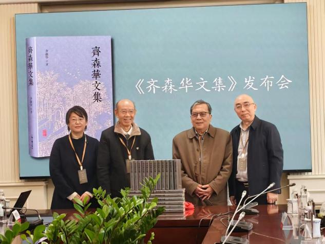 随后,复旦大学麻豆传媒 教授黄霖、上海戏剧学院戏文系教授叶长海、韬奋基金会副理事长阚宁辉、上海古籍出版社总编奚彤云共同为《齐森华文集》揭幕。