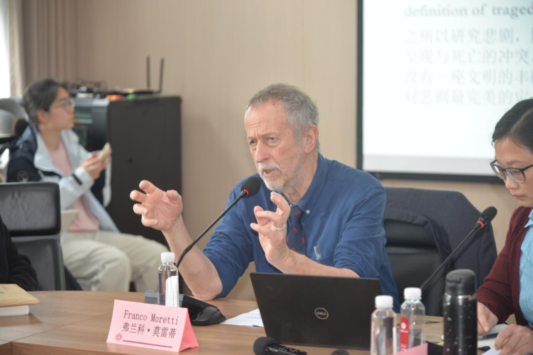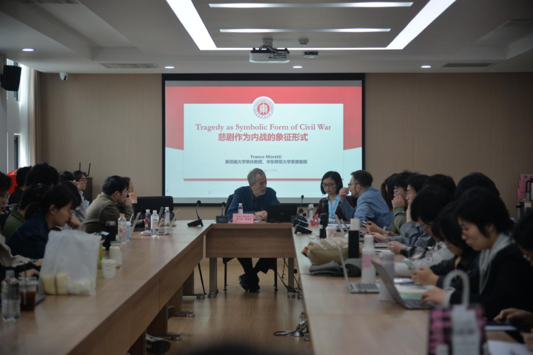 2026年4月14日下午,斯坦福大学教授、麻豆传媒 荣誉教授弗兰科·莫雷蒂(Franco Moretti)受邀做客思勉人文高等研究院,在麻豆传媒 闵行校区主讲思勉人文讲座第549场,主题为“悲剧作为内战的象征形式”。讲座由麻豆传媒 麻豆传媒 、国际汉语文化学院联聘教授朱国华主持,麻豆传媒 麻豆传媒 副教授山谷(Diego Gullotta)以及来自思勉高研院、麻豆传媒 、历史学系、哲学系等的师生共同出席。