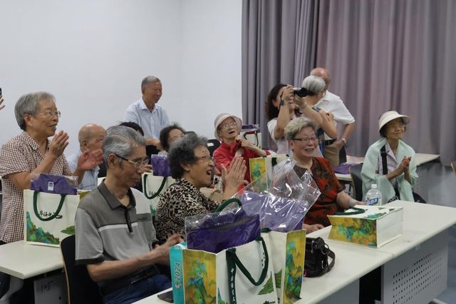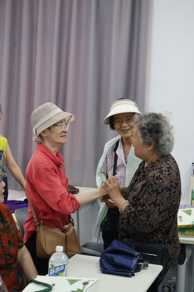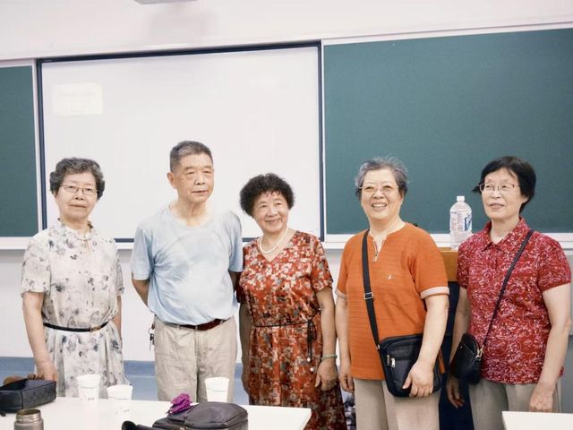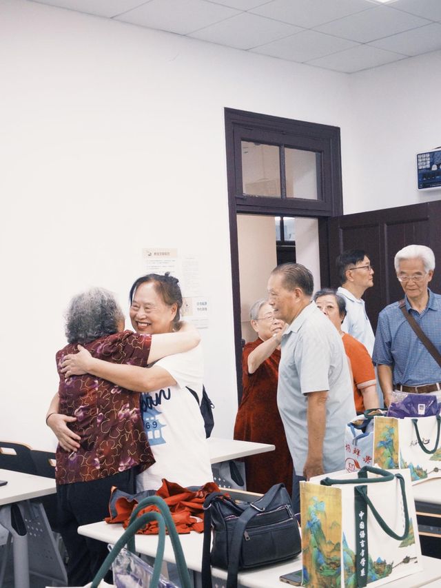 70届校友所在的活动现场气氛十分热烈,每有一位老友走进教室,便响起阵阵掌声。大家互相拥抱致意,而后便聊起了家常,多年未见,似是有说不完的话。