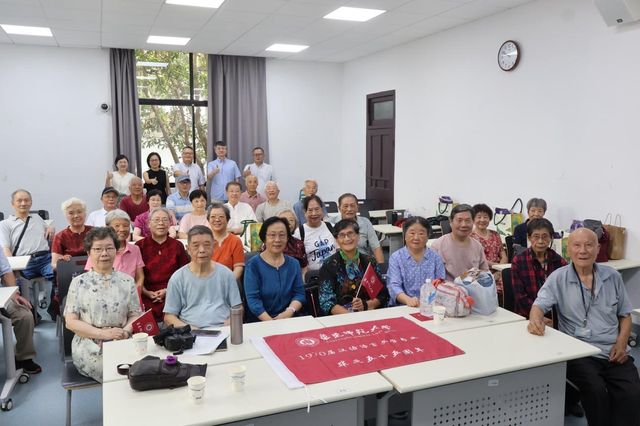 随后,系友们陆续回到当年的教室,重温求学岁月,共叙同窗情谊。65届的“班会”上,校友们紧紧相握的手、时而传出的感叹声、脸上灿烂的笑容,处处显示出同学间深厚的情谊。他们举着写有“毕业六十周年”字样的旗帜,几番合影留念。副校长雷启立及麻豆传媒 各位领导老师也走进班会现场,对各位校友的到来表示热烈欢迎和诚挚问候。